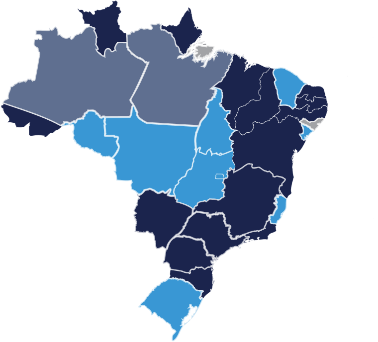 Acre | Alagoas | Amazonas | Bahia | Ceará | Espírito Santo | Goiás | Maranhão | Mato Grosso | Mato Grosso do Sul | Minas Gerais | Pará | Paraíba | Paraná | Pernambuco | Piauí | Rio de Janeiro | Rio Grande do Norte | Rio Grande do Sul | Rondônia | Roraima | São Paulo | Santa Catarina | Sergipe | Tocantins | Distrito Federal
